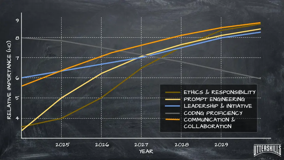As AI continues to evolve, engineers must expand beyond code. Skills like AI literacy, prompt engineering, and ethical decision-making are rising sharply in importance. Projections informed by data from World Economic Forum, LinkedIn's Work Change Report, Gartner, and Multiverse.